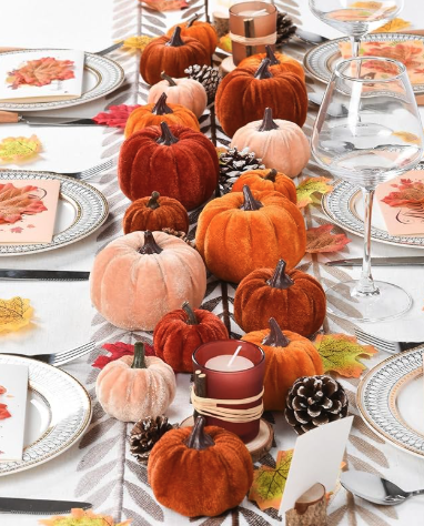 If you need quick, affordable Thanksgiving décor, these velvet pumpkins are an easy win. They come in multiple colors and sizes, making it simple to create a centerpiece or shelf display.