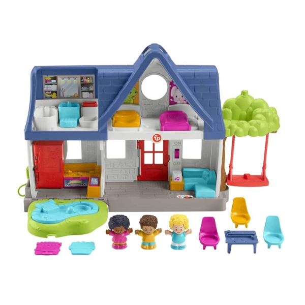 The Little People Friends Together Play House is a perfect blend of pretend play and early learning for toddlers. This cheerful playset features multiple rooms, interactive elements, and over 40 songs, sounds, and phrases that help teach sharing, kindness, and daily routines. Kids can press buttons to activate music and lights, open and close doors, and explore imaginative play with the included figures.