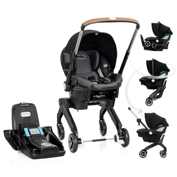 The Evenflo Shyft DualRide Infant Car Seat Stroller Combo is designed to make life with a newborn unbelievably smooth and convenient. This clever travel system transforms instantly from a securely installed infant car seat into a lightweight stroller — no need to move your baby or carry bulky gear. Just release, roll, and go.